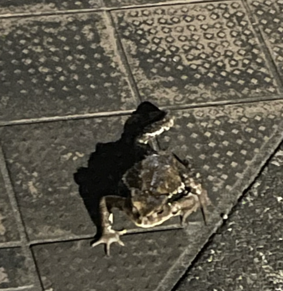 帰宅して、かえるや猫と戯れる。